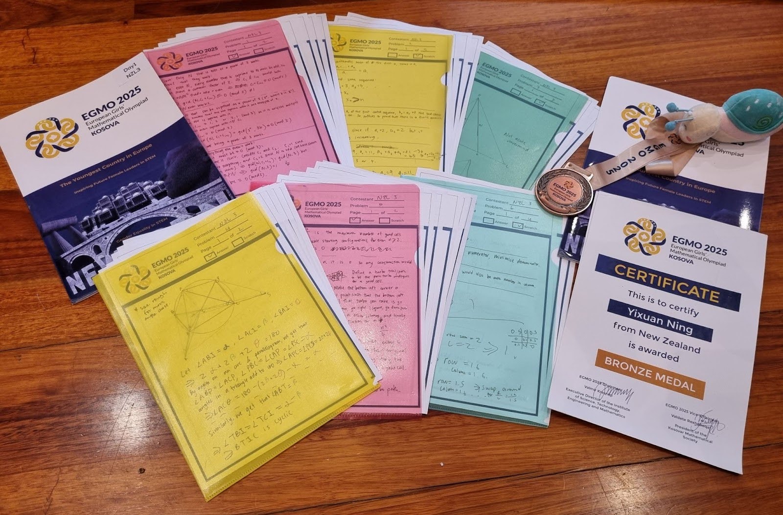 This is a familiar (and hated) character in olympiad mathematics, after its debut in last year’s IMO P5 which trolled many. However, Turbo the snail has appeared not just once. Turbo showed up in 2017 and 2023’s EGMO too! Since combinatorics problems, basically being the only type of previous EGMO problems that I could solve, I secretly was hoping for Turbo to be a more frequent visitor. Anyways because of this, Turbo the snail is now like a religion that we all pray to before our exams. WE ALL LOVE TURBO! Sophie and I even bought a snail plush as our mascot to represent Turbo for good luck. However, this did not change her opinion on combinatorics (personally I think combinatorics is goated).