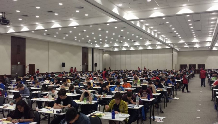 The test hall during the first day of the competition.
